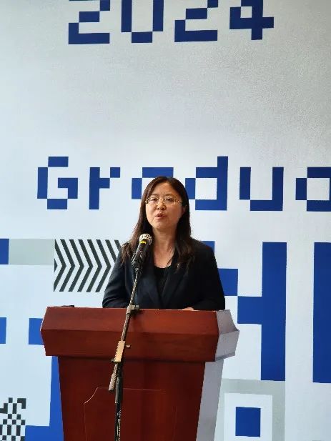 2024届毕业研究生代表李宁发言,他代表全体毕业生向学校、学院、领导、老师们表达了真挚的敬意与感谢,表示毕业只是一个新的起点,未来的路还很长,无论身处何地,从事何种职业,都会牢记母校的教诲,勇敢追逐自己的梦想,继续学习,不断创新,努力成为对社会有贡献的人。