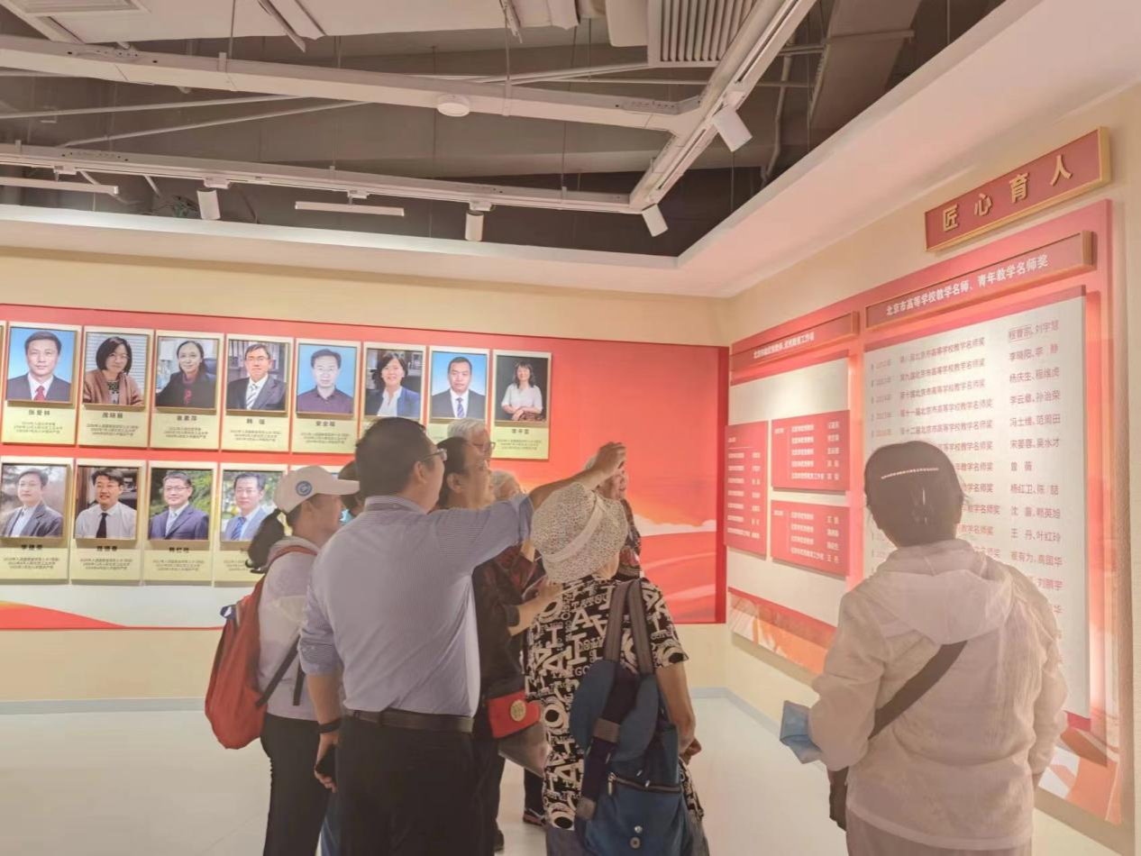 党建馆以“引领·创新”为主题,分为理论教学、案例教学、榜样教学、仪式教学、实训教学五大功能区。在讲解员的带领下,大家学习了习近平总书记的重要讲话,了解学校党支部先进典型和党建工作特色案例,观摩馆内主题展示墙、影像视频、大数据屏等。在“匠心育人”荣誉墙上,退休老同志看到自己以及一起奋斗的同事的名字非常激动,纷纷表示“学校不会忘记”,自己当年的点滴奋斗都被学校铭记在册。