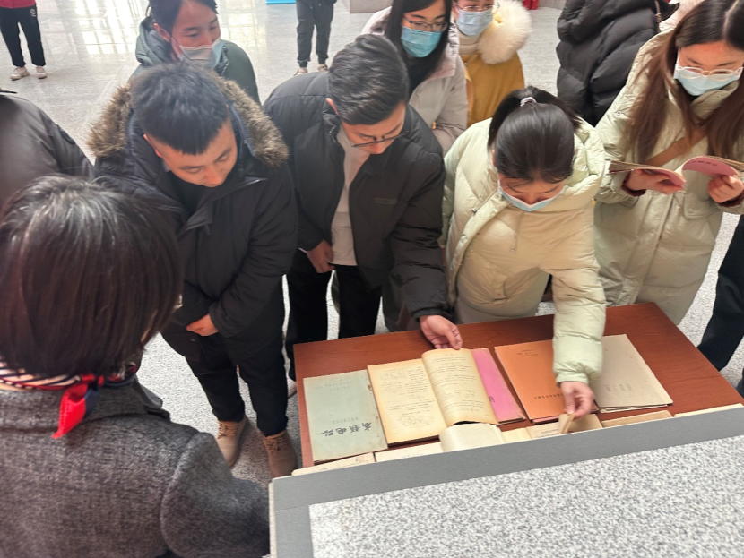 为了让新教师感受到学校教育教学的优良传统,夏海州馆长和张彩会老师专门将新征集到的建校初期教材陈列到展厅。张老师为新教师介绍了展品的来历和意义。展品由退休教师孙景琪教授捐赠,手写的讲义和当年抽签口试的独特考试方式,让新教师感受颇深。大家翻阅着工整的手写讲义,纷纷表示对老一辈教师的敬佩之情。
