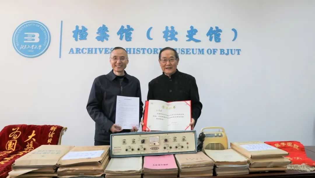 孙老师1962年入职best365官网中文版登录无线电系(原三系),在职期间承担无线电发送设备、高频电子电路等多门课程的教学任务及实验室的建设工作。他对学校教育教学工作有着深厚的情感,一直珍藏着建校初期的教学资料。此次捐赠包含讲义、考题、课程设计、成绩单等428件纸质档案,以及与学校科研、人才培养相关的电子设备、锦旗等4件实物档案。此次捐赠丰富了校史馆藏,对记录北工大教育教学历史有着重大意义。