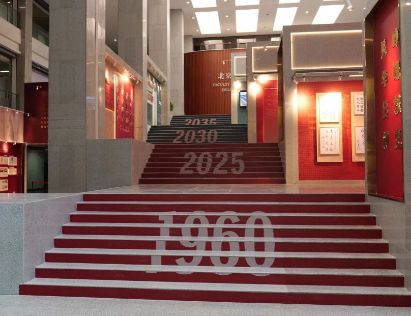 拾级而上,楼梯处呈现了学校第十二次党代会提出的2025年、2030年、2035年发展目标:到2025年,世界一流大学建设的框架全面拉开;到2030年,世界一流大学建设将重点取得突破;到2035年,世界一流大学建设的成效将持续显现。