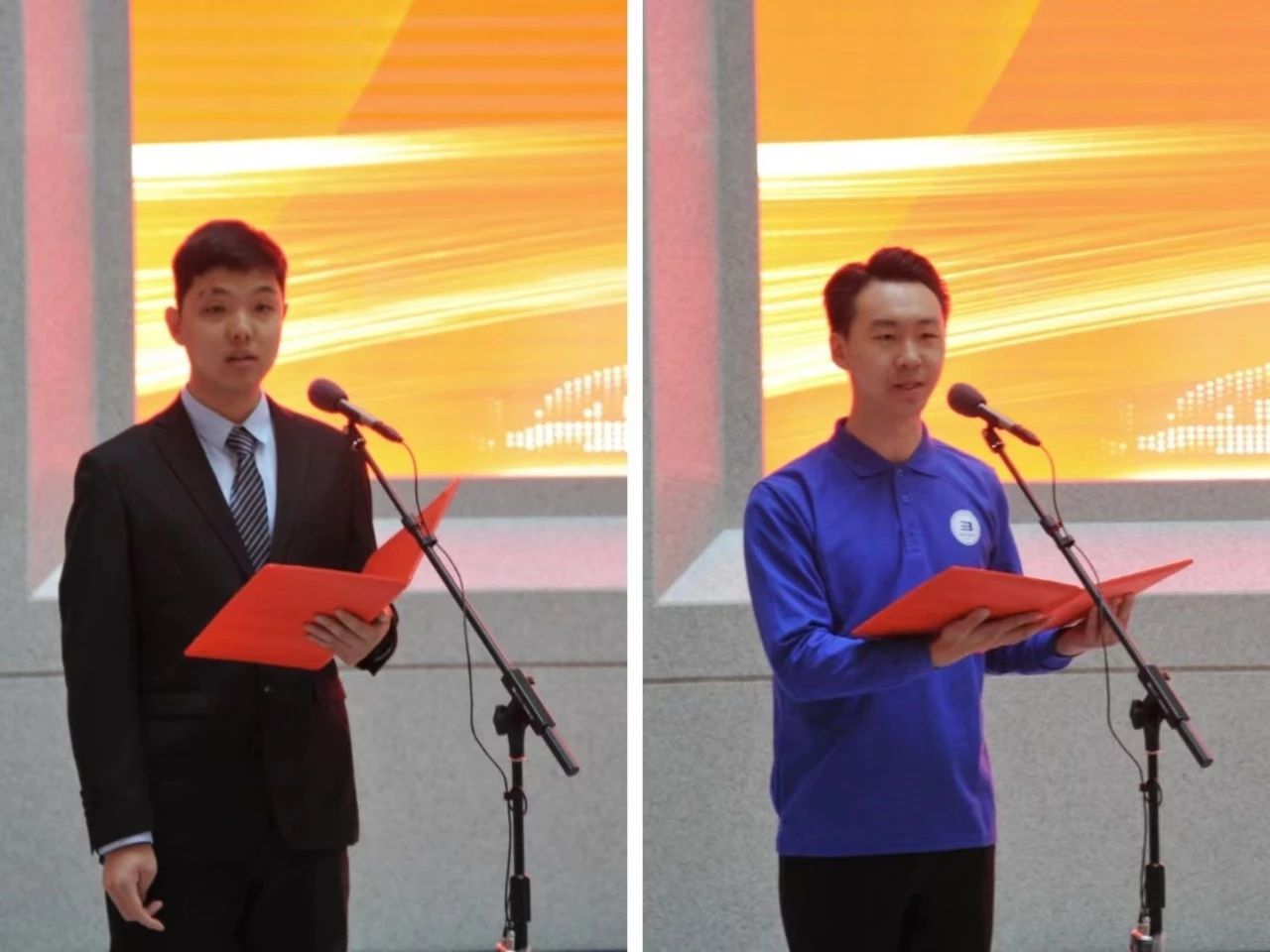 城市建设学部教师薛宇作为新入职教师代表发言,表示将传承“植根首都、科技报国”初心使命,继承和发扬“做真科研、真做科研”的光荣传统,为北工大建设世界一流大学作出积极贡献;北京-都柏林国际学院学生杨光璟作为志愿讲解员代表发言,表示将努力宣传好、展示好、发扬好学校办学成果和办学精神,把新时代的工大故事讲得更动听。