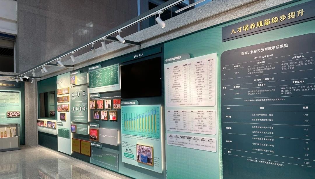 第二展区重点呈现新时代学校坚持为党育人、为国育才,坚守立德树人初心,以培养服务国家和首都发展所需人才为出发点,在人才培养方面取得重要成效。