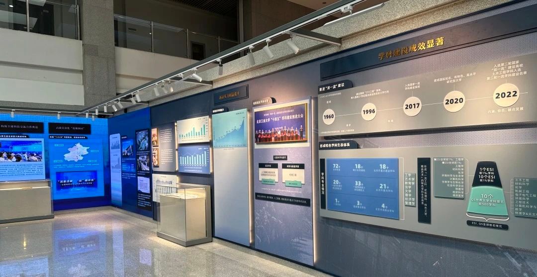 第三展区重点呈现新时代学校始终与国家和首都发展同频共振,北工大人秉持“做真科研、真做科研”的优良传统。展区陈列了学校积极服务国家重大工程及服务国家重大活动的丰硕成果,以实际行动践行“首都重大工程有贡献,国家超级工程有身影”的光荣承诺。