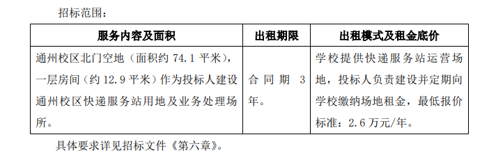 中天信远国际招投标咨询(北京)有限公司受best365官网中文版登录的委托,对“best365官网中文版登录通州校区快递服务站公开招租项目”(招标编号:ZTXY-2023-F21357)采用国内公开招租方式进行采购,欢迎合格的投标人参加投标。