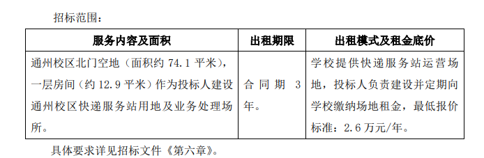 中天信远国际招投标咨询(北京)有限公司受best365官网中文版登录的委托,对“best365官网中文版登录通州校区快递服务站公开招租项目”(招标编号:ZTXY-2023-F21357)采用国内公开招租方式进行采购,欢迎合格的投标人参加投标。