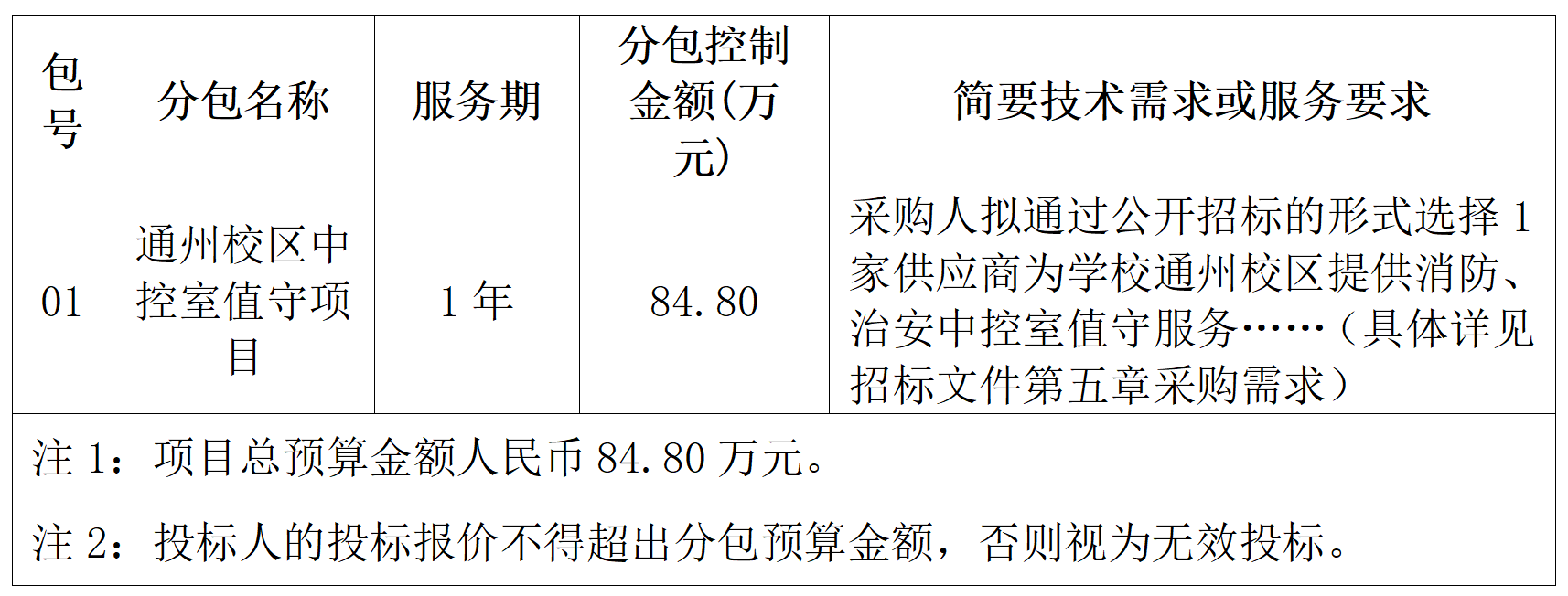2.项目名称:(校拨)通州校区管理中心后勤保障费-best365官网中文版登录通州校区中控室值守项目