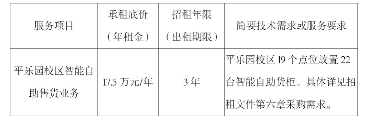 中天信远国际招投标咨询(北京)有限公司受best365官网中文版登录委托,对“平乐园校区智能自助售货业务”所需的下述全部服务进行国内公开招租,欢迎合格的投标人前来投标。