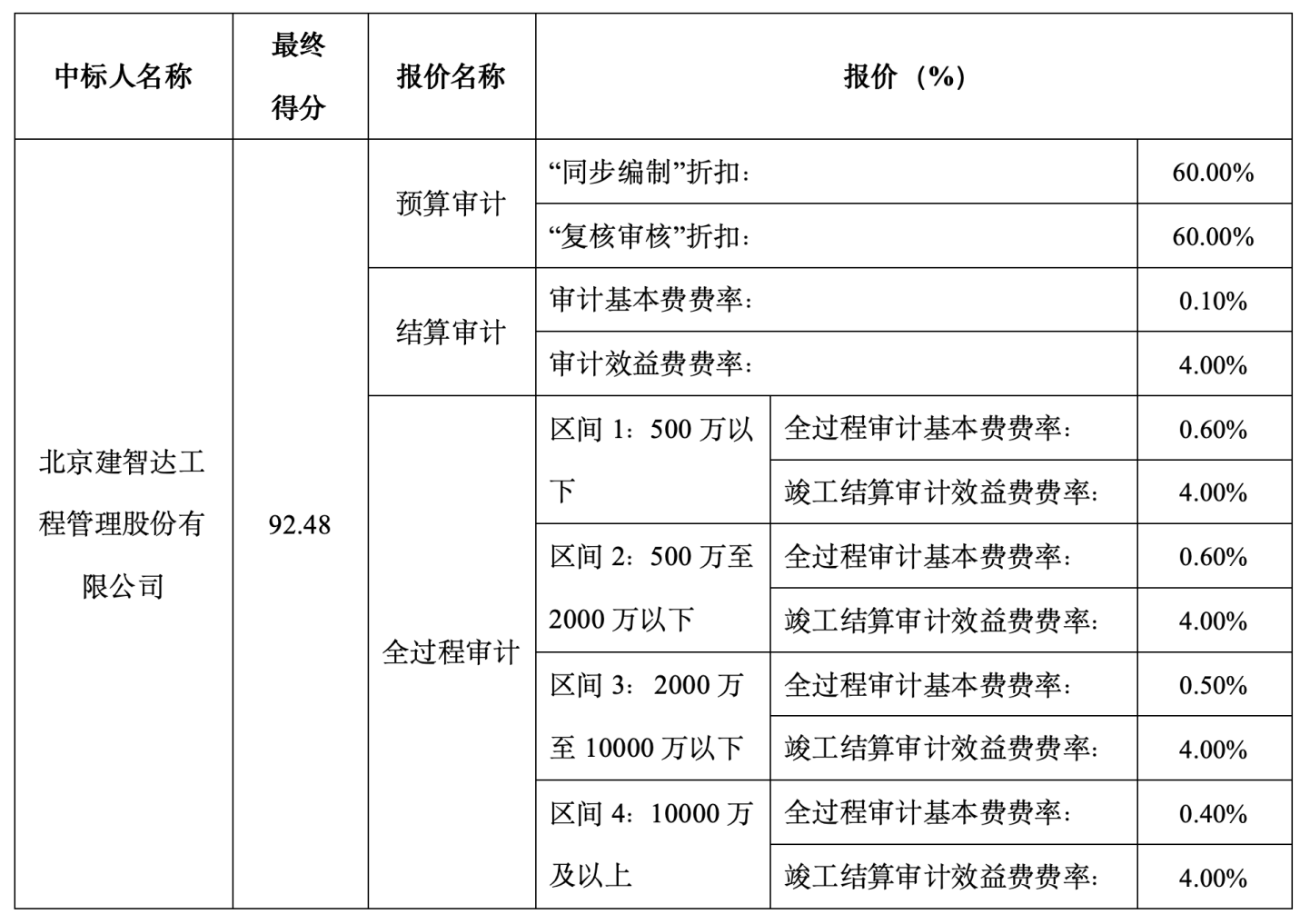 供应商名称:北京建智达工程管理股份有限公司