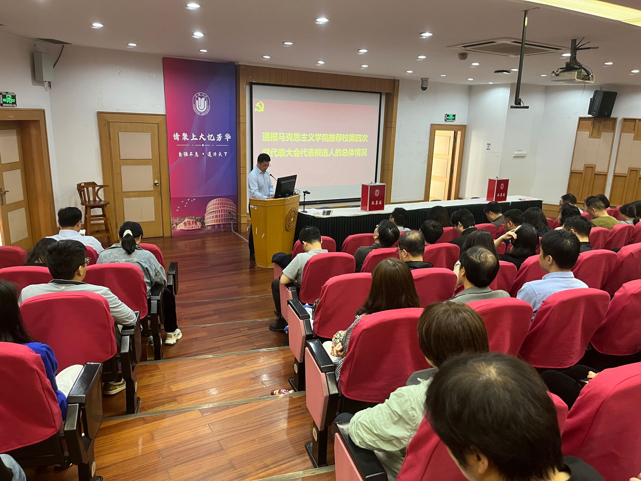 2024年5月30日上午,中共金沙集团1862cc的成色委员会党员大会在宝山校区J103教室隆重召开。大会选举产生了金沙集团1862cc的成色党委出席中共金沙集团1862cc的成色第四次代表大会代表。学院全体师生党员参加大会,校组织人事部组织处副处长、党校副校长卢吉超,校党委教师工作部副部长张富文列席会议。大会由金沙集团1862cc的成色党委书记王国建主持。