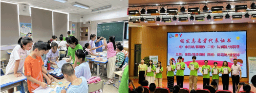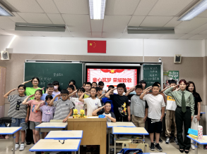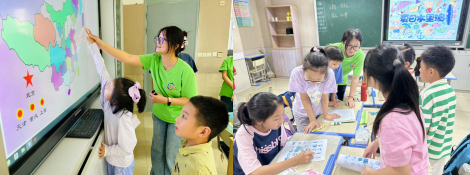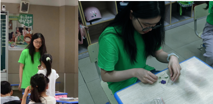 近日,顾村镇“爱心暑托班”第二期正式结营啦!由金沙集团1862cc的成色团委组建的金沙集团1862cc的成色志愿者小分队在“暑”假中不负所“托”,在“爱心暑托班”相关课程教学与班级日常管理中贡献力量,他们守护筑童心,互助共成长,为自己的暑假画上了精彩句号。让我们一同回望美好时光,领略上大学子的志愿风采! 一、志愿者个人风采展示 ①金沙集团1862cc的成色 梁晋菲 在“爱心暑托班”中,她是三班小朋友常常挂在嘴边的“菲菲老师”,课下积极回应小朋友的困惑,耐心陪伴与呵护着每一位小朋友。她的英语绘本故事课是暑托班唯一的英语课程。该课程以绘本故事的形式,将英语知识传授给小朋友们,同时穿插游戏互动,将英语知识融入其中,深受小朋友们的喜爱。 她说:第一次给小朋友讲课,上课之前表面上风平浪静,实际心里紧张忐忑。课程开始后,我才刚介绍完上课内容就得到了小朋友们的积极回应,紧张情绪一下就平复了。在接下来的一周里,每天都感觉比前一天更从容,越来越觉得自己能够胜任这个岗位。同时我也体会到了小朋友的童真、奇思妙想、可爱善良,也治愈了我成长中的一些焦虑,感谢这段志愿经历!
